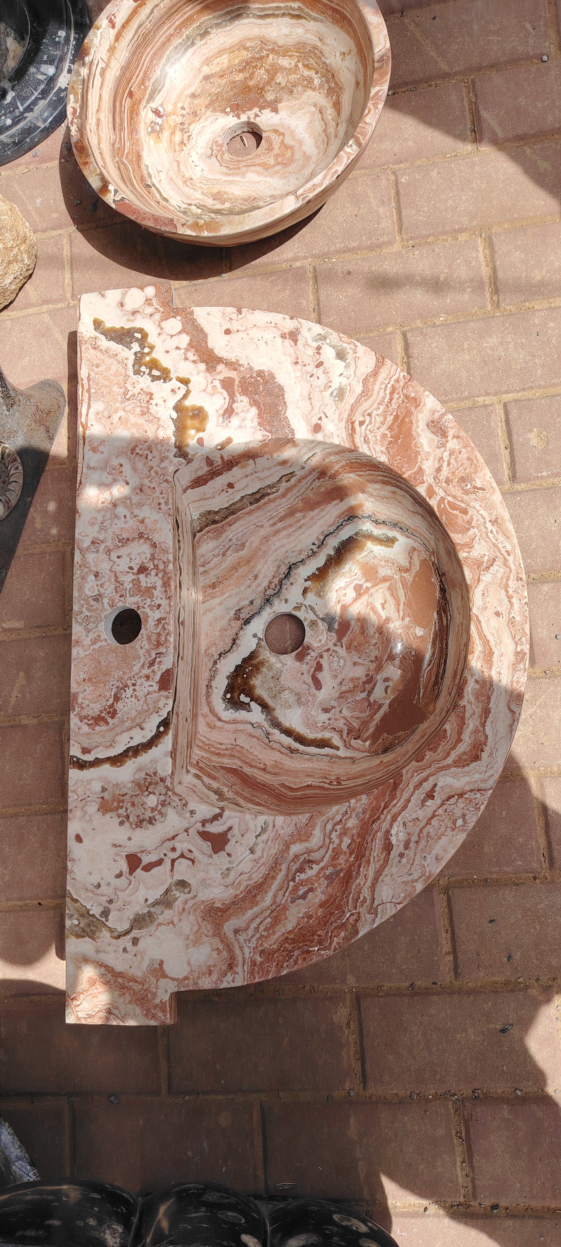 Apportez une touche de luxe et d’élégance à votre salle de bain avec cette vasque en onyx naturel, chaque pièce étant unique grâce à ses veines translucides et ses dégradés naturels de couleur qui captent la lumière et subliment votre espace.