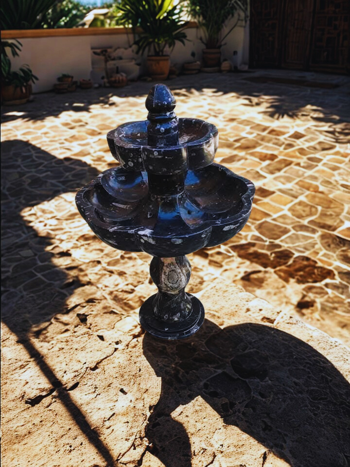 Son design intemporel et ses finitions soignées mettent en valeur la beauté naturelle du marbre. Équipée d’une petite pompe économique, elle assure un écoulement régulier de l’eau tout en consommant peu d’énergie.